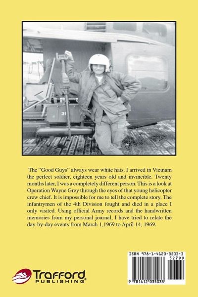 March, 1969. Another season would soon change in America. Winter was ending and the warm breezes of spring were melting the snow. The earth would renew itself as it has done for thousands of years. The generation of Americans which had been born since the Second World War was becoming young adults. Termed the ''Now'' generation by themselves, many made plans for the up coming year. Fueled by ''Rock N Roll'', ''Free Love'', and the "'Anti-War Movement'' these plans would bring change to a troubled country. The ''Summer of Love'' would be the answer of this which many needed. Half a world away, another season was about to change and other members of the is generation made other plans. The Dry season in the Central Highlands of Vietnam would soon end. It would be replace by the Monsoon season which would come out of the west. For this reason, young American soldiers would again enter th Valley of Death which was called the Plei-Trap. The War Above the Trees is the story of the air crews flying support to the men of the 4th Infantry Division during Operation Wayne Grey in March and April of 1969. This is a day by day account of what happened as seen through the eyes of a young crew chief. It includes After Action Reports and eyewitness statements of both air crew members and infantry personnel which were on the ground. This is not a story about the war, but rather the story of the young soldiers who fought there. It tells of the brotherhood formed by the small things which was part of our lives. A meal shared with friends. The time spent together which would bring relief from the madness of the war. It is not the story of heroes but of young men doing their jobs in a war they did not understand. This is a factual account of an operation few people have heard about. It was not written to judge the actions of the people responsible for its planning. Its main goal is help the people who were there still looking for answers thrity years later. It is also a tribute to our borthers who died and the hope that their families can find some closure to their loss.