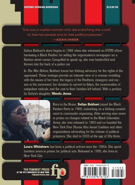 Born in Harlem, Safiya Bukhari joined the Black Panther Party in 1969. Imprisoned for nine years, Bukhari then co-founded the New York Free Mumia Abu-jamal Coalition and was co-chair of the Jericho Movemnet to Free US Political Prisoners and Prisoners of War. She died in 2003. Laura Whitehorn was a member of the Weather Underground, a supporter of the Black Civil Rights Movement, and the struggle for Puerto Rican independence. She worked to expose the illegal COINTELPRO of the FBI. Arrested in 1985, she became a defendant in the Resistance Conspiracy Case. She spent fourteen years in prison and was released in 1999. Born in Harlem, Wonda Jones is the daughter of Safiya Bukhari. Jones is the director of the Safiya Bukhari - Albert Nuh Washington Foundation, which raises funds for the families of US political prisoners. She is also a nurse and consultant to Field Up Productions, an independent film company that produces documentaries and dramatic features focusing on the Civil Rights era.