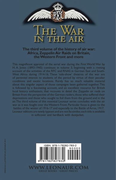 The third volume of the history of air war: Africa, Zeppelin Air Raids on Britain, the Western Front and more This magnificent appraisal of the aerial war during the First World War by H. A. Jones (1893-1945) continues in volume 3, beginning with a riveting account of the activities of the RFC and RNAS in German East and South-West Africa during 1914-16. These 'side-show' theatres of the war are of perennial interest to students of the period by virtue of their peculiar conditions and exotic locations. Rarely has so much valuable material about this singular aspect of those campaigns been gathered together. This is followed by a fascinating account, and an excellent resource for British local history enthusiasts, that recounts in detail the Zeppelin air raids on Britain from the perspective of the German raiders, those who suffered their deprivations and those who sought to foil them from the ground and in the air. The third volume of this essential Leonaur series concludes with the air war as it was fought over the Western Front. Particular focus is given to the battles of the winter of 1916-17 and especially to the Battle of Arras, 1917. Leonaur editions are newly typeset and are not facsimiles; each title is available in softcover and hardback with dustjacket.