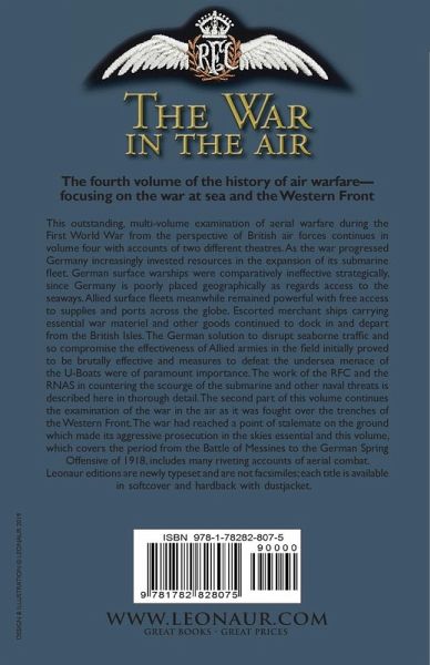The fourth volume of the history of air warfare-focusing on the war at sea and the Western Front This outstanding, multi-volume examination of aerial warfare during the First World War from the perspective of British air forces continues in volume four with accounts of two different theatres. As the war progressed Germany increasingly invested resources in the expansion of its submarine fleet. German surface warships were comparatively ineffective strategically, since Germany is poorly placed geographically as regards access to the seaways. Allied surface fleets meanwhile remained powerful with free access to supplies and ports across the globe. Escorted merchant ships carrying essential war materiel and other goods continued to dock in and depart from the British Isles. The German solution to disrupt seaborne traffic and so compromise the effectiveness of Allied armies in the field initially proved to be brutally effective and measures to defeat the undersea menace of the U-Boats were of paramount importance. The work of the RFC and the RNAS in countering the scourge of the submarine and other naval threats is described here in thorough detail. The second part of this volume continues the examination of the war in the air as it was fought over the trenches of the Western Front. The war had reached a point of stalemate on the ground which made its aggressive prosecution in the skies essential and this volume, which covers the period from the Battle of Messines to the German Spring Offensive of 1918, includes many riveting accounts of aerial combat. Leonaur editions are newly typeset and are not facsimiles; each title is available in softcover and hardback with dustjacket.
