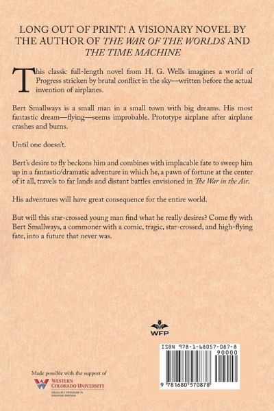 Come fly with Bert Smallways, a commoner with a comic, tragic, star-crossed, and high-flying fate, into a future that never was. Long out of print! A visionary novel by the author of The War of the Worlds and The Time Machine This classic, full-length novel from H. G. Wells imagines a world of progress stricken by brutal conflict in the sky-written before the actual invention of airplanes. Bert Smallways is a small man in a small town with big dreams. His most fantastic dream-flying-seems improbable. Prototype airplane after airplane crashes and burns. Until one doesn't. Bert's desire to fly beckons him and combines with implacable fate to sweep him up in a fantastic, dramatic adventure in which he, a pawn of fortune at the center of it all, travels to far lands and distant battles envisioned in The War in the Air. His adventures will have great consequence for the entire world. But will this star-crossed young man find what he really desires?