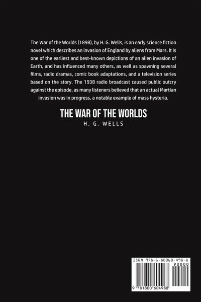 Do you want to read The War of the Worlds? If so then keep reading... The War of the Worlds (1898), by H. G. Wells, is an early science fiction novel which describes an invasion of England by aliens from Mars. It is one of the earliest and best-known depictions of an alien invasion of Earth, and has influenced many others, as well as spawning several films, radio dramas, comic book adaptations, and a television series based on the story. The 1938 radio broadcast caused public outcry against the episode, as many listeners believed that an actual Martian invasion was in progress, a notable…mehr