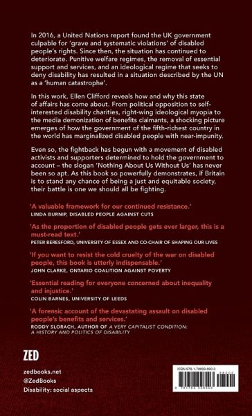Winner of the Bread and Roses Award for Radical Publishing Award 2021 In 2016, a United Nations report found the UK government culpable for 'grave and systematic violations' of disabled people's rights. Since then, driven by the Tory government's obsessive drive to slash public spending whilst scapegoating the most disadvantaged in society, the situation for disabled people in Britain has continued to deteriorate. Punitive welfare regimes, the removal of essential support and services, and an ideological regime that seeks to deny disability has resulted in a situation described by the UN as a 'human catastrophe'. In this searing account, Ellen Clifford - an activist who has been at the heart of resistance against the war on disabled people - reveals precisely how and why this state of affairs has come about. From spineless political opposition to self-interested disability charities, rightwing ideological myopia to the media demonization of benefits claimants, a shocking picture emerges of how the government of the fifth-richest country in the world has been able to marginalize disabled people with near-impunity. Even so, and despite austerity biting ever deeper, the fightback has begun, with a vibrant movement of disabled activists and their supporters determined to hold the government to account - the slogan 'Nothing About Us Without Us' has never been so apt. As this book so powerfully demonstrates, if Britain is to stand any chance of being a just and equitable society, their battle is one we should all be fighting.