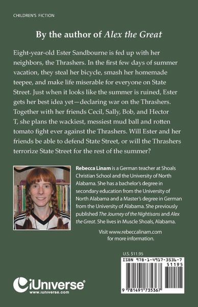 By the author of Alex the Great Eight-year-old Ester Sandbourne is fed up with her neighbors, the Thrashers. In the first few days of summer vacation, they steal her bicycle, smash her homemade teepee, and make life miserable for everyone on State Street. Just when it looks like the summer is ruined, Ester gets her best idea yet-declaring war on the Thrashers. Together with her friends Cecil, Sally, Bob, and Hector T, she plans the wackiest, messiest mud ball and rotten tomato fight ever against the Thrashers. Will Ester and her friends be able to defend State Street, or will the Thrashers terrorize State Street for the rest of the summer?