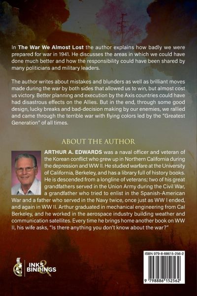In The War We Almost Lost the author explains how badly we were prepared for war in 1941. He discusses the areas in which we could have done much better and how the responsibility could have been shared by many politicians and military leaders. The author writes about mistakes and blunders as well as brilliant moves made during the war by both sides that allowed us to win, but almost cost us victory. Better planning and execution by the Axis countries could have had disastrous effects on the Allies. But in the end, through some good design, lucky breaks and bad-decision making by our enemies, we rallied and came through the terrible war with flying colors led by the "Greatest Generation" of all times.
