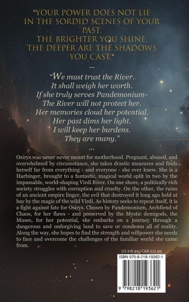 A soul-rending, atmospheric dark fantasy adventure about subverting destiny, a painful journey of self-discovery, and finding courage against all odds to keep trying. Osirys was never never meant for motherhood. Pregnant, abused, and overwhelmed by circumstance, she takes drastic measures and finds herself far from everything - and everyone - she ever knew. She is a Harbinger, brought to a fantastic, magical world split in two by the impassable, world-shaping Virdi River. On one shore, a politically rich society struggles with corruption and cruelty. On the other, the ruins of an ancient empire linger, the evil that destroyed it long ago held at bay by the magic of the wild Virdi. As history seeks to repeat itself, it is a fight against fate for Osirys. Chosen by Pandemonium, Archfiend of Chaos, for her flaws - and preserved by the Mystic demigods, the Muses, for her potential, she embarks on a journey through a dangerous and unforgiving land to save or condemn all of reality. Along the way, she hopes to find the strength and willpower she needs to face and overcome the challenges of the familiar world she came from. The Ward of Exiles is a high resolution dive into the gritty undercarriage of human nature. Kime reminds us that refusing to choose is still a choice, and it's better to try and fail than to have never tried at all.