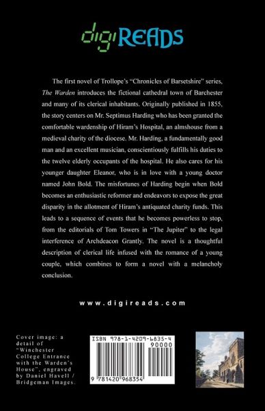 The first novel of Trollope’s "Chronicles of Barsetshire" series, "The Warden" introduces the fictional cathedral town of Barchester and many of its clerical inhabitants. Originally published in 1855, the story centers on Mr. Septimus Harding who has been granted the comfortable wardenship of Hiram’s Hospital, an almshouse from a medieval charity of the diocese. Mr. Harding, a fundamentally good man and an excellent musician, conscientiously fulfills his duties to the twelve elderly occupants of the hospital. He also cares for his younger daughter Eleanor, who is in love with a young doctor named John Bold. The misfortunes of Harding begin when Bold becomes an enthusiastic reformer and endeavors to expose the great disparity in the allotment of Hiram’s antiquated charity funds. This leads to a sequence of events that he becomes powerless to stop, from the editorials of Tom Towers in "The Jupiter" to the legal interference of Archdeacon Grantly. The novel is a thoughtful description of clerical life infused with the romance of a young couple, which combines to form a novel with a melancholy conclusion. This edition is printed on premium acid-free paper.