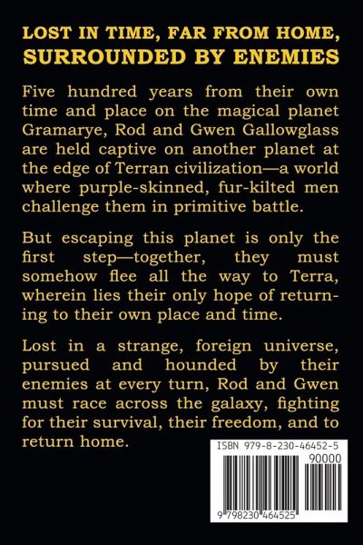 LOST IN TIME, FAR FROM HOME, SURROUNDED BY ENEMIES Five hundred years from their own time and place on the magical planet Gramarye, Rod and Gwen Gallowglass are held captive on another planet at the edge of Terran civilization - a world where purple-skinned, fur-kilted men challenge them in primitive battle. But escaping this planet is only the first step - together, they must somehow flee all the way to Terra, wherein lies their only hope of returning to their own place and time. Lost in a strange, foreign universe, pursued and hounded by their enemies at every turn, Rod and Gwen must race across the galaxy, fighting for their survival, their freedom, and to return home.