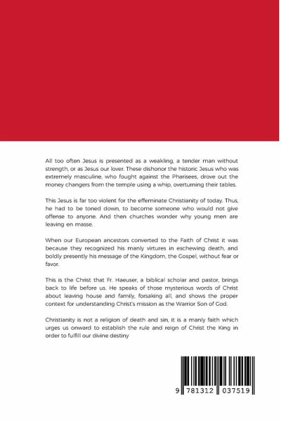All too often Jesus is presented as a weakling, a tender man without strength, or as Jesus our lover. These dishonor the historic Jesus who was extremely masculine, who fought against the Pharisees, drove out the money changers from the temple using a whip, overturning their tables. This Jesus is far too violent for the effeminate Christianity of today. Thus, he had to be toned down, to become someone who would not give offense to anyone. And then churches wonder why young men are leaving en masse. When our European ancestors converted to the Faith of Christ it was because they recognized his manly virtures in eschewing death, and boldly presently his message of the Kingdom, the Gospel, without fear or favor. This is the Christ that Fr. Haeuser, a biblical scholar and pastor, brings back to life before us. He speaks of those mysterious words of Christ about leaving house and family, forsaking all, and shows the proper context for understanding Christ's mission as the Warrior Son of God. Christianity is not a religion of death and sin, it is a manly faith which urges us onward to establish the rule and reign of Christ the King in order to fulfill our divine destiny