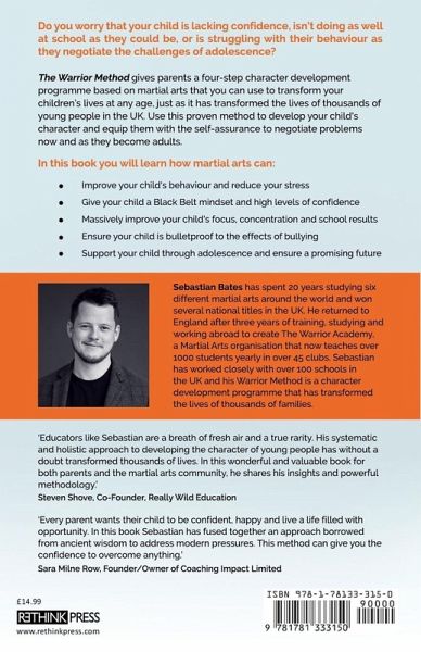 Do you worry that your child is lacking confidence, isn't doing as well at school as they could be, or is struggling with their behaviour as they negotiate the challenges of adolescence? The Warrior Method gives parents a four-step character development programme based on martial arts that you can use to transform your children's lives at any age just as it has transformed the lives of thousands of young people in the UK. Use this proven method to develop your child's character and equip them with the self-assurance to negotiate problems now and as they become adults. In this book you will learn how martial arts can: • Improve your child's behaviour and reduce your stress • Give your child a Black Belt mindset and high levels of confidence • Massively improve your child's focus, concentration and school results • Ensure your child is bulletproof to the effects of bullying • Support your child through adolescence and ensure a promising future