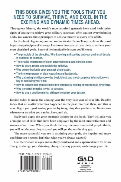 This book gives you the tools that you need to survive, thrive, and excel in the exciting and dynamic times ahead. Throughout history, the world's most admired generals have used basic principles of strategy to achieve great military successes, often against overwhelming odds. You can use these principles to achieve success in every area of life. In this book, legendary author and motivator Brian Tracy explains the most important principles of strategy. He shows how you can use them to achieve your most cherished goals. Some of the invaluable lessons you'll learn: * The principle of the objective. Why knowing and spelling out your goal in all details is essential to success. * The crucial importance of clear, uncomplicated, and concise plans. * How to seize, retain, and exploit the initiative. * Why concentration is your greatest single asset. * The immense power of clear coaching and leadership. * Why gathering intelligence-the best, latest, and most complete information--is key to achieving your aims. * How to ensure that creative ideas are continually coming at you from all directions. * Why personal integrity is vital to success. * How to use a positive mental attitude to control your destiny. Decide today to make the coming year the very best year of your life. Resolve today that no matter what has happened in the past, that was then, and this is now. Begin your goal setting process by imagining that you have no limitations whatsoever on what you can be, have, and do. Study and apply the great strategic insights in this book. They will give you a unique set of skills that have been employed by the most successful men and women of our time. When you think the way the most successful people think, you will act the way they act, and you will get the results they get. The more successful you are in attaining your goals, the happier and more confident you become. Isn't that what you've always wanted? Use the wisdom of ages, masterfully condensed and explained here by Brian Tracy, to change your thinking, change the way you act, and change your life.