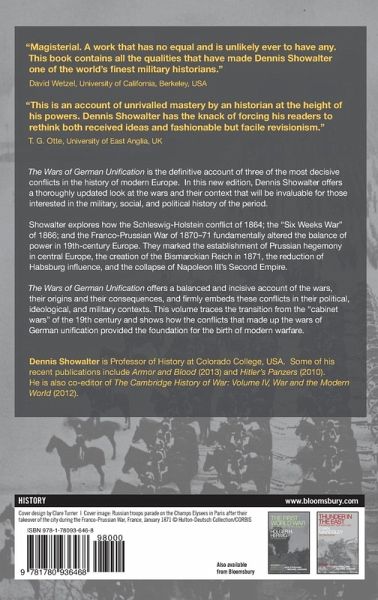 The Wars of German Unification is the definitive account of the three of the most decisive conflicts in the history of modern Europe. In this new edition, Dennis Showalter offers a thoroughly updated look at the wars and their context that will be invaluable for those interested in the military, social and political history of the period. Showalter explores how the Schleswig-Holstein conflict of 1864; the 'Six Weeks War' of 1866; and the Franco-Prussian War of 1870-71 fundamentally altered the balance of power in 19th-century Europe. They marked the establishment of Prussian hegemony in central Europe, the creation of the Bismarckian Reich in 1871, the reduction of Habsburg influence and the collapse of Napoleon III's Second Empire. The Wars of German Unification offers a balanced and incisive account of the wars, their origins and their consequences, and firmly embeds these conflicts in their political, ideological and military contexts. This volume traces the transition from the 'cabinet wars' of the 19th century and shows how the conflicts that made up the wars of German unification provided the foundation for the birth of modern warfare.