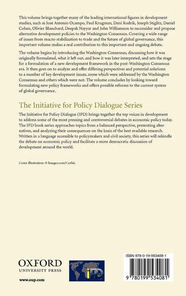 This volume brings together many of the leading international figures in development studies, such as Jose Antonio Ocampo, Paul Krugman, Dani Rodrik, Joseph Stiglitz, Daniel Cohen, Olivier Blanchard, Deepak Nayyar and John Williamson to reconsider and propose alternative development policies to the Washington Consensus. Covering a wide range of issues from macro-stabilization to trade and the future of global governance, this important volume makes a real contribution to this important and ongoing debate. The volume begins by introducing the Washington Consensus, discussing how it was originally formulated, what it left out, and how it was later interpreted, and sets the stage for a formulation of a new development framework in the post-Washington Consensus era. It then goes on to analyze and offer differing perspectives and potential solutions to a number of key development issues, some which were addressed by the Washington Consensus and others which were not. The volume concludes by looking toward formulating new policy frameworks and offers possible reforms to the current system of global governance.