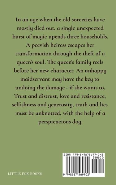 In an age when the old sorceries have mostly died out, a single unexpected burst of magic upends the lives of three households. Selfish heiress Vespasia Marchand berates an ill woman in the street, a woman who was once a renowned spell-caster. Her granddaughter Melu has inherited her gift, though it has not been nurtured. In a fit of anger, the girl impulsively transforms Vespasia into a wasp, doomed to live out an ordinary wasp's life unless she can sting another person and occupy their body. The shrewd and ambitious Vespasia sets her sights on the queen Callao, a gentle and beloved woman with an adoring husband, King Ranulph, and adored daughter, the princess Linnea. With the soul-theft accomplished, how will Vespasia carry off the charade? How can the king and the young Linnea cope with the sudden awful shift in the queen's character? The heiress's maid Ginevra Hawkeshaw has witnessed the curse; Melu's family flees. The disappearance of Vespasia has set Ginevra free from a lifetime of unhappy servitude, so she isn't sure she wants to help the doughty sheriff Hugh discover what might have happened. And yet, she feels compelled to try to undo the damage. Distrust and trust, love and resistance, ambivalence and dedication, selfishness and generosity, truth and lies, must be navigated to resolve the heartache (with the help of a perspicacious dog).