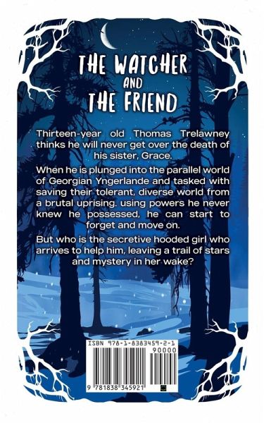 Thirteen-year old Thomas Trelawney thinks he will never get over the death of his sister, Grace. When he is plunged into the parallel world of Georgian Yngerlande and tasked with saving their tolerant, diverse world from a brutal uprising, using powers he never knew he possessed, he can start to forget and move on. But who is the secretive hooded girl who arrives to help him, leaving a trail of stars and mystery in her wake? Every Watcher needs a Friend "Fans of 'Orphans of the Tide' and 'His Dark Materials' will love this book - full of mystery, adventure and emotion."