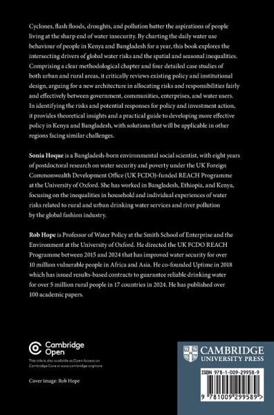 Cyclones, flash floods, droughts, and pollution batter the aspirations of people living at the sharp end of water insecurity. By charting the daily water use behaviour of people in Kenya and Bangladesh for a year, this book explores the intersecting drivers of global water risks and the spatial and seasonal inequalities. Comprising a clear methodological chapter and four detailed case studies of both urban and rural areas, it critically reviews existing policy and institutional design, arguing for a new architecture in allocating risks and responsibilities fairly and effectively between government, communities, enterprises, and water users. In identifying the risks and potential responses for policy and investment action, it provides theoretical insights and a practical guide to developing more effective policy in Kenya and Bangladesh, with solutions that will be applicable in other regions facing similar challenges. This title is also available as Open Access on Cambridge Core.