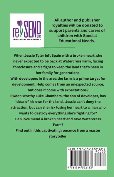 When Jessie Tyler left Spain with a broken heart, she never expected to be back at Watercress Farm, facing foreclosure and a fight to keep the land that's been in her family for generations. With developers in the area the farm is a prime target for development. Help comes from an unexpected source, but does it come with expectations? Swoon-worthy Luke Chambers, the son of developer, has ideas of his own for the land. Jessie can't deny the attraction, but can she risk losing her heart to a man who wants to destroy everything she's fighting for? Can love mend a broken heart and save Watercress Farm? Find out in this captivating romance. All author and publisher royalties will be donated to support parents and carers of children with Special Educational Needs.
