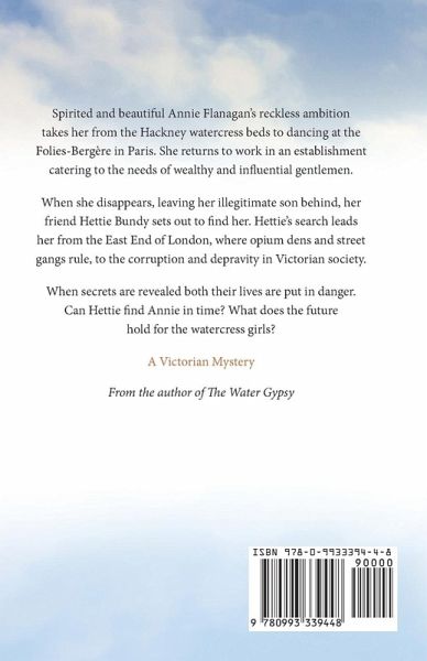 Spirited and beautiful Annie Flanagan's reckless ambition takes her from the Hackney watercress beds to dancing at the Folies-Bergère in Paris. She returns to work in an establishment catering to the needs of wealthy and influential gentlemen. When she disappears, leaving her illegitimate son behind, her friend Hettie Bundy sets out to find her. Hettie's search leads her from the East End of London, where opium dens and street gangs rule, to the corruption and depravity in Victorian society. Secrets are revealed that put both their lives in danger. Can Hettie find Annie in time? What does the future hold for the watercress girls? A Victorian Mystery The Watercress Girls was chosen as a FINALIST in The Wishing Shelf Awards where it was described as 'A totally engrossing, powerfully written historical novel.