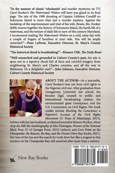 Who killed Captain Littleton Condiff? The wife who slept by his side? A robber seeking the small fortune under his mattress? A son desperate to escape the drudgery of his father's life as an oysterman? His apparently harmless mother-in-law? Perhaps a conspiracy of his wife, her mother, their son? Into this tale of murder at the turn of the 20th century is woven the tale of the imprisonment and trial of Littleton's wife, Bessie; the history of his Chesapeake Bay fishing village, Solomons Island; the harsh life of a waterman; and the texture of daily life in turn-of-the century Maryland.
