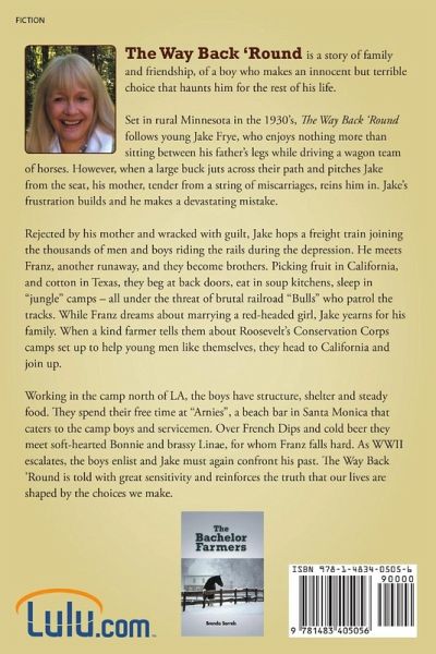 Set in rural Minnesota in the 1930's, The Way Back 'Round follows young Jake Frye, who enjoys nothing more than sitting between his father's legs while driving a wagon team of horses. However, when a large buck juts across their path and pitches Jake from the seat, his mother, tender from a string of miscarriages, reins him in. Jake's frustration builds and he makes a devastating mistake. Rejected by his mother and wracked with guilt, Jake hops a freight train joining the thousands of men and boys riding the rails during the depression. He meets Franz, another runaway, and they become brothers. Picking fruit in California, and cotton in Texas, they beg at back doors, eat in soup kitchens, sleep in "jungle" camps - all under the threat of brutal railroad "Bulls" who patrol the tracks. While Franz dreams about marrying a red-headed girl, Jake yearns for his family. When a farmer tells them about Roosevelt's Conservation Corps camps set up to help young men like themselves, they head to California and join up.
