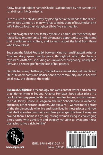 A tow-headed toddler named Charlie is abandoned by her parents at a rural diner in 1940s Arizona. Fate assures the child's safety by placing her in the hands of the diner's owner, Ned Connors, a man who has seen his share of loss. Ned and his wife Rebecca lost their daughter Libby five years earlier.As Ned navigates his new family dynamic, Charlie is befriended by the native Navajo community. She is given a rare opportunity to understand their traditions and culture, and to learn about the land from those who know it best. Set along the fabled Route 66, between Kingman and Flagstaff, Arizona, Charlie's story spans twenty years, throughout which she faces a myriad of obstacles, including an unplanned pregnancy, unrequited love, and a secret grief for the loss of her parents. Despite her many challenges, Charlie lives a remarkable, self-sacrificing life; a life of empathy and dedication to the community, and in her own small way, she changes the world. (About the Author)Susan M. Obijiski is a technology and web content writer, and a holistic practitioner living in Sedona, Arizona. Her latest book takes place in a real location, peppered with real communities, towns, and businesses: the old Harvey House in Seligman, the Red Schoolhouse in Valentine, and many other historic locations. She explains, "I wanted to tell a story of the simple people who live and have lived in these places and how their dedication to community and family changed the lives of everyone around them. Charlie is a young, strong woman living in challenging times, faced with adversity and tragedy, yet able to overcome these obstacles to live a rich, full life."