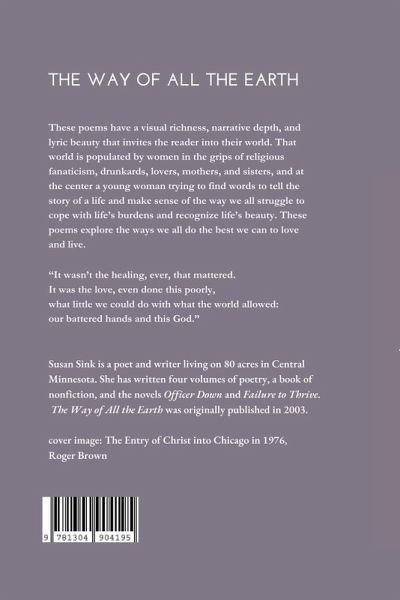 These poems have a visual richness, narrative depth, and lyric beauty that invites the reader into their world. At the center of it is a young woman trying to find the words to tell the stories of a life and make sense of the way we all struggle to cope with life's burdens and recognize life's beauty. This is the second edition of Sink's first volume of poetry. In it she observes characters who are trying, through flawed families and communities, to make sense of life's struggles. For Sink, there is the wound of childhood sexual violence at the center of the story, a silence and silencing of violence, and the attempt to organize the world truthfully to offer healing of a different sort than is offered in the Pentecostal, fundamentalist tradition she found herself. A wound that makes it difficult to embrace life in the world outside the church as well.Poe
