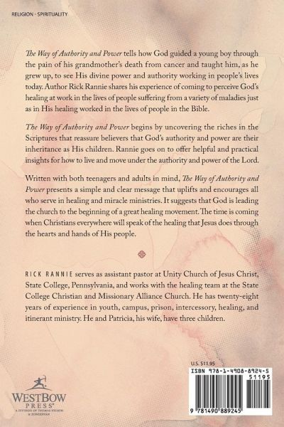The Way of Authority and Power tells how God guided a young boy through the pain of his grandmother’s death from cancer and taught him, as he grew up, to see His divine power and authority working in people’s lives today. Author Rick Rannie shares his experience of coming to perceive God’s healing at work in the lives of people suffering from a variety of maladies just as in His healing worked in the lives of people in the Bible. The Way of Authority and Power begins by uncovering the riches in the Scriptures that reassure believers that God’s authority and power are their inheritance as His children. Rannie goes on to offer helpful and practical insights for how to live and move under the authority and power of the Lord. Written with both teenagers and adults in mind, The Way of Authority and Power presents a simple and clear message that uplifts and encourages all who serve in healing and miracle ministries. It suggests that God is leading the church to the beginning of a great healing movement. The time is coming when Christians everywhere will speak of the healing that Jesus does through the hearts and hands of His people.