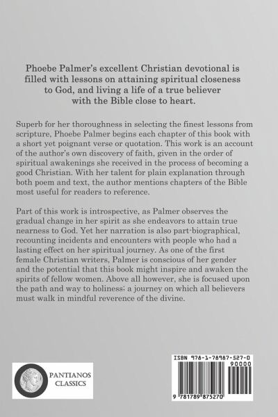 Phoebe Palmer's excellent Christian devotional is filled with lessons on attaining spiritual closeness to God, and living a life of a true believer with the Bible close to heart. Superb for her thoroughness in selecting the finest lessons from scripture, Phoebe Palmer begins each chapter of this book with a short yet poignant verse or quotation. This work is an account of the author's own discovery of faith, given in the order of spiritual awakenings she received in the process of becoming a good Christian. With her talent for plain explanation through both poem and text, the author mentions chapters of the Bible most useful for readers to reference. Part of this work is introspective, as Palmer observes the gradual change in her spirit as she endeavors to attain true nearness to God. Yet her narration is also part-biographical, recounting incidents and encounters with people who had a lasting effect on her spiritual journey. As one of the first female Christian writers, Palmer is conscious of her gender and the potential that this book might inspire and awaken the spirits of fellow women. Above all however, she is focused upon the path and way to holiness; a journey on which all believers must walk in mindful reverence of the divine.