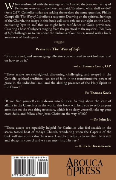 When confronted with the message of the Gospel, the Jews on the day of Pentecost were cut to the heart and said, "Brethren, what shall we do?" (Acts 2:37) Catholics today are asking themselves the same question. Phillip Campbell's The Way of Life offers a response. Drawing on the spiritual heritage of the Church, the essays in this book call us to refocus our sight on the Lord, cultivating "eyes to see" that we might have confidence in God's providence. Covering a host of subjects ranging from the practical to the mystical, The Way of Life challenges us to rise above the darkness of our times, armed with a lively awareness of God's grace.