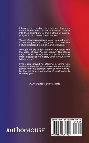 Intimate and puzzling short stories of women from different walks of life. A stairway surprise into their chambers to find a string of playful, poignant, and passionate narratives. Voices of various personas reveal accurate dramatic monologues and dialogues of a sensitive nature addressed to no one and everyone. "Though we are various women, our voices are the voice of one. We are nobody. Our stores might be of no significant importance and might disappear into history. What is your story? Who are you?"