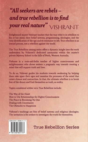 "All seekers are rebels - and true rebellion is to find your real nature." - Vishrant Enlightened master Vishrant teaches that the true rebel is in rebellion to his or her mind, their belief systems, programming, ideologies, and the very identification of the ego and its resistance to life. True rebellion is an inward process, not a rebellion against the world. The True Rebellion satsang series offers a dynamic insight into the work undertaken by Vishrant's dedicated sannyasins within the master's private Mystery School in the hills of Perth, Western Australia. Vishrant is a nuts-and-bolts…mehr