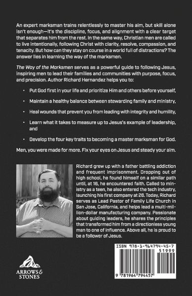 An expert marksman trains relentlessly to master his aim, but skill alone isn't enough-it's the discipline, focus, and alignment with a clear target that separates him from the rest. In the same way, Christian men are called to live intentionally, following Christ with clarity, resolve, compassion, and tenacity. But how can they stay on course in a world full of distractions? The answer lies in learning the way of the marksmen.The Way of the Marksmen serves as a powerful guide to following Jesus, inspiring men to lead their families and communities with purpose, focus, and precision. Author Richard Hernandez helps you to:Put God first in your life and prioritize Him and others before yourself, Maintain a healthy balance between stewarding family and ministry, Heal wounds that prevent you from leading with integrity and humility, Learn what it takes to measure up to Jesus's example of leadership, and Develop the four key traits to becoming a master marksman for God. Men, you were made for more. Fix your eyes on Jesus and steady your aim.