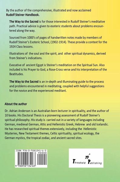 By the author of the comprehensive, illustrated and now acclaimed Rudolf Steiner Handbook. The Way to the Sacred is for those interested in Rudolf Steiner's meditative path. Practical advice is given to esoteric students about problems encountered along the way. Sourced from thousands of pages of handwritten notes made by members of Rudolf Steiner's Esoteric School, (1902-1914). These provide a context for the 1924 Class lessons. Illustrations of the soul and the spirit, and other spiritual dynamics, derived from Steiner's indications. Evocative of ancient Egypt is Steiner's meditation on the Spiritual Sun. Also included is his Prayer to God, a Rose-Cross verse and his interpretation of the Beatitudes. The Way to the Sacred is an in-depth and illuminating guide to the process and problems encountered in meditating, coupled with helpful suggestions for the novice and the experienced meditant.