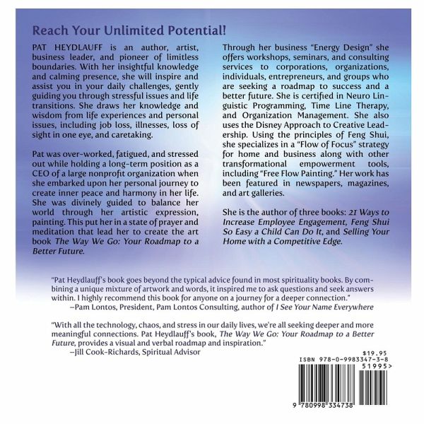 The Way We Go: Your Roadmap to a Better Future features Pat's original artwork and verses to guide readers to their own inner place of peace and calm. It is a unique mixture of spiritual artwork and words that inspire you to ask questions and seek answers within. Each page encourages you to find your inner connection and empowers you to reach your unlimited potential. A spiritual revolution is about to explode in our country - one where people are looking for a spiritual connection, not a religious or church experience. The floodgates have opened with the arrival of the 21st Century where people hunger for connection and meaning. The Way We Go helps people achieve that connection they are so desperately longing for.