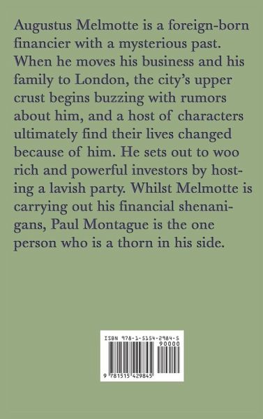 Augustus Melmotte is a foreign-born financier with a mysterious past. When he moves his business and his family to London, the city's upper crust begins buzzing with rumors about him, and a host of characters ultimately find their lives changed because of him. He sets out to woo rich and powerful investors by hosting a lavish party. Whilst Melmotte is carrying out his financial shenanigans, Paul Montague is the one person who is a thorn in his side.