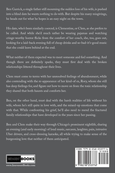 Ben Garrick, a single father still mourning the sudden loss of his wife, is pushed into a blind date he wants nothing to do with. But despite his many misgivings, he heads out for what he hopes is an easy night on the town. His date, who's been similarly coerced, is Clementine, or Clem, as she prefers to be called. And while she'd much rather be wearing pajamas and watching cringe-worthy horror flicks from the comfort of her couch, she, too, goes out looking for a laid-back evening full of cheap drinks and so-bad-it's-good music that she could leave behind at the end. What neither of them expected was to meet someone and feel something. And though there are definitely sparks, they must first deal with the broken relationships littered throughout their lives. Clem must come to terms with her unresolved feelings of abandonment, while also contending with the re-appearance of her kind-of ex, Rory, whom she still has deep feelings for, and figure out how to move on from the toxic relationship they shared that both haunts and comforts her. Ben, on the other hand, must deal with the harsh realities of life without his wife, whom he's still quite in love with, and the mixed-up emotions that come with that. While confronting his grief, he'll also need to mend the fractured family relationships that have developed in the years since her passing. Ben and Clem make their way through Chicago's prominent nightlife, sharing an evening (and early morning) of loud music, sarcasm, laughter, pain, intrusive Uber drivers, and cross-dressing karaoke, all while trying to make sense of the burgeoning love that neither of them anticipated."