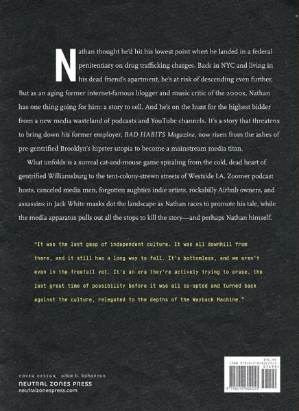The Wayback Machine, for all its antics, is in possession of a soulful undercurrent.....acid, uproarious, and punchily brilliant. --The Metropolitan Review Dripping with Easton-Ellisian satire, it's funny and oddly disgusting in equal measure, suffused with irony and savage pisstakes of the hipster literati. -- Glasgow Review of Books Nathan thought he'd hit his lowest point when he landed in a federal penitentiary on drug trafficking charges. Back in NYC and living in his dead friend's apartment, he's at risk of descending even further. But as an aging former blogger and internet-famous music critic of the 2000s, Nathan has one thing going for him: a story to sell. And he's on the hunt for the highest bidder from a new media wasteland of podcasts and YouTube channels. It's a story that threatens to bring down his former employer, BAD HABITS Magazine, now risen from the ashes of pre-gentrified Brooklyn's hipster utopia to become a mainstream media titan. What unfolds is a surreal cat-and-mouse game spiraling from the cold, dead heart of gentrified Williamsburg to the tent-colony-strewn streets of Westside LA. Zoomer podcast hosts, canceled media men, forgotten aughties indie artists, rockabilly Airbnb owners, and assassins in Jack White masks dot the landscape as Nathan races to promote his tale, while the media apparatus pulls out all the stops to kill the story-and perhaps Nathan himself. "It was the last gasp of independent culture. It was all downhill from there, and it still has a long way to fall. It's bottomless, and we aren't even in the freefall yet. It's an era they're actively trying to erase, the last great time of possibility before it was all co-opted and turned back against the culture, relegated to the depths of the Wayback Machine."