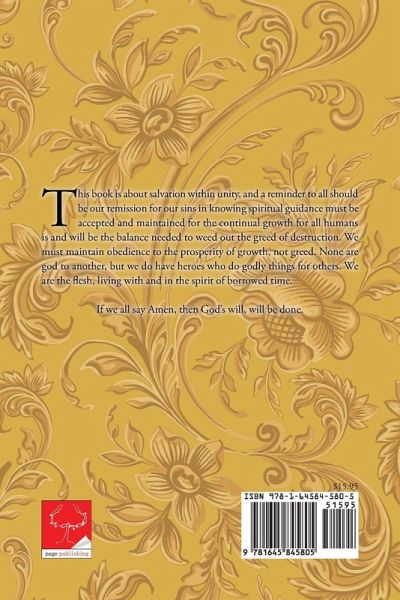 This book is about salvation within unity, and a reminder to all should be our remission for our sins in knowing spiritual guidance must be accepted and maintained for the continual growth for all humans is and will be the balance needed to weed out the greed of destruction. We must maintain obedience to the prosperity of growth, not greed. None are god to another, but we do have heroes who do godly things for others. We are the flesh, living with and in the spirit of borrowed time. If we all say Amen, then God's will, will be done.