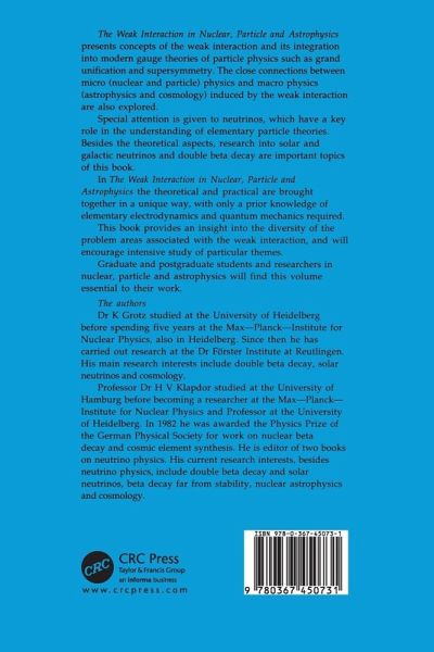 This book provides insight into concept of the weak interaction and its integration into the conceptual structure of elementary particle physics. It exhibits the important role of the weak interaction in nuclear, particle and astrophysics together with the close connection between these areas.