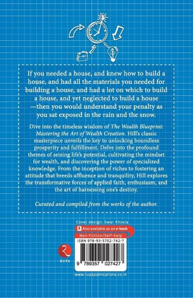 If you needed a house, and knew how to build a house, and had all the materials you needed for building a house, and had a lot on which to build a house, and yet neglected to build a house - then you would understand your penalty as you sat exposed in the rain and the snow. Dive into the timeless wisdom of The Wealth Blueprint: Mastering the Art of Wealth Creation. Hill's classic masterpiece unveils the key to unlocking boundless prosperity and fulfillment. Delve into the profound themes of seizing life's potential, cultivating the mindset for wealth, and discovering the power of specialized knowledge. From the inception of riches to fostering an attitude that breeds affluence and tranquility, Hill explores the transformative forces of applied faith, enthusiasm, and the art of harnessing one's destiny. Curated and compiled from the works of the author.