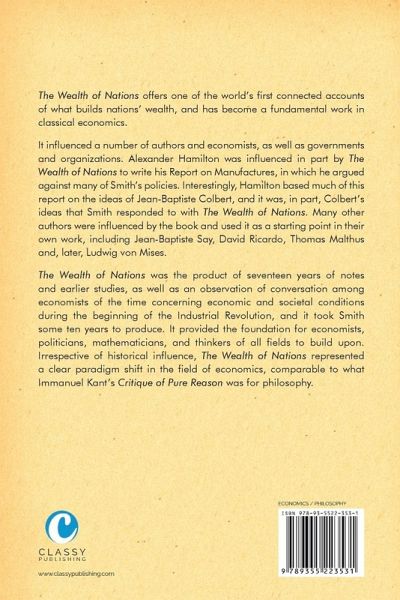 The Wealth of Nations offers one of the world's first connected accounts of what builds nations' wealth, and has become a fundamental work in classical economics. It influenced a number of authors and economists, as well as governments and organizations. Alexander Hamilton was influenced in part by The Wealth of Nations to write his Report on Manufactures, in which he argued against many of Smith's policies. Interestingly, Hamilton based much of this report on the ideas of Jean-Baptiste Colbert, and it was, in part, Colbert's ideas that Smith responded to with The Wealth of Nations. Many other authors were influenced by the book and used it as a starting point in their own work, including Jean-Baptiste Say, David Ricardo, Thomas Malthus and, later, Ludwig von Mises. The Wealth of Nations was the product of seventeen years of notes and earlier studies, as well as an observation of conversation among economists of the time concerning economic and societal conditions during the beginning of the Industrial Revolution, and it took Smith some ten years to produce. It provided the foundation for economists, politicians, mathematicians, and thinkers of all fields to build upon. Irrespective of historical influence, The Wealth of Nations represented a clear paradigm shift in the field of economics, comparable to what Immanuel Kant's Critique of Pure Reason was for philosophy.