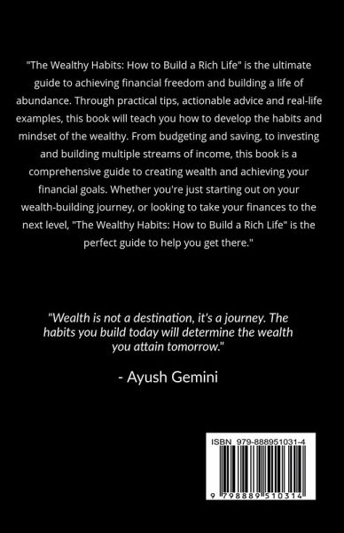 "The Wealthy Habits: How to Build a Rich Life" is the ultimate guide to achieving financial freedom and building a life of abundance. Through practical tips, actionable advice and real-life examples, this book will teach you how to develop the habits and mindset of the wealthy. From budgeting and saving, to investing and building multiple streams of income, this book is a comprehensive guide to creating wealth and achieving your financial goals. Whether you're just starting out on your wealth-building journey, or looking to take your finances to the next level, "The Wealthy Habits: How to Build a Rich Life" is the perfect guide to help you get there."