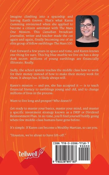 Imagine climbing into a spaceship and leaving Earth forever. That's exactly what Karen Cumming envisioned when she applied to become a citizen astronaut with the Mars One mission. To her amazement and delight, this broadcast journalist, writer and teacher made the cut again and again, finally becoming one of an elite group of fellow earthlings: the Mars 100.Fast forward a few years in space and time, and the teacher in Karen knows one thing for sure. This big blue marble we live on has a deep dark secret: millions of young earthlings are financially illiterate. Really.Sadly, the school system teaches the middle class how to work for their money instead of how to make their money work for them.Karen's mission - and yes, she has accepted it - is to teach financial literacy to earthlings young and old, and to change millions of lives in the process.Get ready to master your basics, master your mind, and master a specific investment strategy known as a DRIP or Dividend Reinvestment Plan. In no time, you'll find yourself boldly going where few middle-class humans have gone before.Are you concerned about your family's financial future?Are you concerned about your own?Happily, financial literacy isn't rocket science.If Karen can become a Wealthy Martian, so can you.