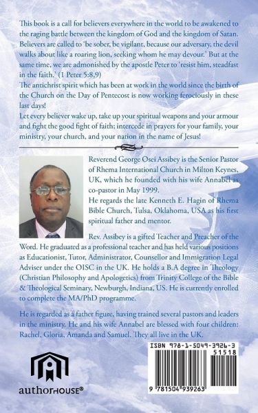 This book is a call for believers everywhere in the world to be awakened to the raging battle between the kingdom of God and the kingdom of Satan. Believers are called to 'be sober,be vigilant, because our adversary, the devil walks about like a roaring lion, seeking whom he may devour.' But at the same time, we are admonished by the apostle Peter to 'resist him, steadfast in the faith.' (1 Peter 5:8,9) The antichrist spirit which has been at work in the world since the birth of the Church on the Day Pentecost is now working ferociously in these last days! Let every believer wake up, take up your spiritual weapons and your armour and fight the good fight of faith; intercede in prayers for your family, your ministry, your church, and your nation in the name of Jesus!