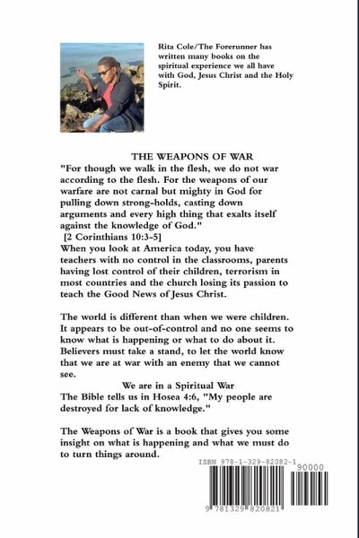 THE WEAPONS OF WAR "For though we walk in the flesh, we do not war according to the flesh." "For the weapons of our warfare are not carnal but mighty in God for pulling down strong-holds, casting down arguments and every high thing that exalts itself against the knowledge of God." The Weapons of War is a book that gives you some insight on what is happening and what we must do to turn things around.