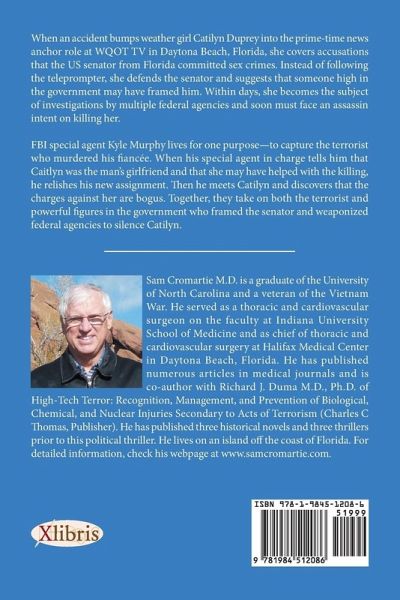 When an accident bumps weather girl Catilyn Duprey into the prime-time news anchor role at WQOT TV in Daytona Beach, Florida, she covers accusations that the US senator from Florida committed sex crimes. Instead of following the teleprompter, she defends the senator and suggests that someone high in the government may have framed him. Within days, she becomes the subject of investigations by multiple federal agencies and soon must face an assassin intent on killing her. FBI special agent Kyle Murphy lives for one purposeto capture the terrorist who murdered his fiance. When his special agent in charge tells him that Caitlyn was the mans girlfriend and that she may have helped with the killing, he relishes his new assignment. Then he meets Catilyn and discovers that the charges against her are bogus. Together, they take on both the terrorist and powerful figures in the government who framed the senator and weaponized federal agencies to silence Catilyn.