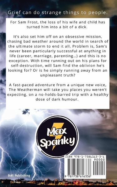 Grief can do some strange things to people. For Sam Frost, the loss of his wife and child has turned him into kind of a dick. It's also set him off on a weird obsession, chasing bad weather around the world in search of the ultimate storm to end it all. Problem is, Sam's never been particularly successful at anything in life (career, marriage, parenting...) and this is no exception. With time running out on his plans for self-destruction, will Sam find the oblivion he's looking for? Or is he simply running away from an unpleasant truth? A fast-paced adventure from a unique new voice, The Weatherman will take you places you weren't expecting, with a healthy serving of dark humour.