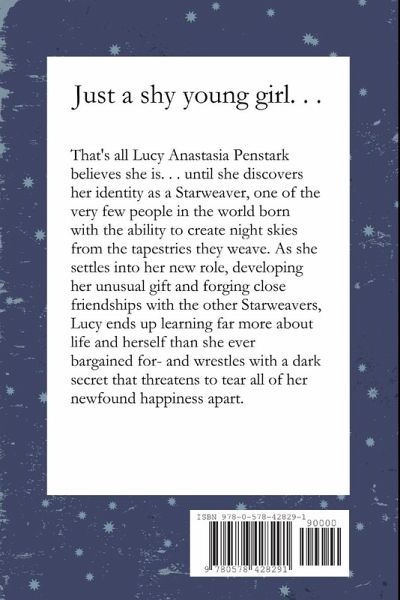 Lucy Penstark's lonely, quiet life is altered forever when she discovers her identity as a Starweaver, one of the few people in the world born with the ability to create night skies by weaving tapestries. Lucy soon finds herself gradually maturing alongside newfound friends and learning more about both the highs and lows of life than she ever thought possible as she tries to balance developing her gift and battling with a tragic secret that threatens to ruin everything.