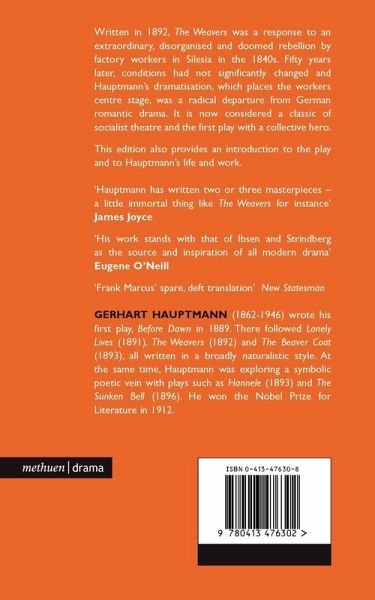 Written in 1892, The Weavers was a response to an extraordinary, disorganised and doomed rebellion by factory workers in Silesia in the 1840s. Fifty years later, conditions had not significantly changed and Hauptmann's dramatisation, which places the workers centre stage, was a radical departure from German romantic drama. It is now considered a classic of socialist theatre and the first play with a collective hero. This edition also provides an introduction to the play and to Hauptmann's life and work. 'Hauptmann has written two or three masterpieces - a little immortal thing like The Weavers for instance' James Joyce 'His work stands with that of Ibsen and Strindberg as the source and inspiration of all modern drama' Eugene O'Neill.
