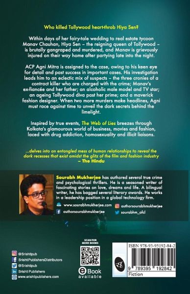 Who killed Tollywood heart-throb Hiya Sen? Within days of her fairy-tale wedding to real estate tycoon Manav Chauhan, Hiya Sen - the reigning queen of Tollywood - is brutally gangraped and murdered, and Manav is grievously injured on their way home after partying late into the night. ACP Agni Mitra is assigned to the case, owing to his keen eye for detail and past success in important cases. His investigation leads him to an eclectic mix of suspects - the three cronies of a contract killer who are charged with the crime; Manav's ex-fiancée and her father; an alcoholic male model and TV star; an ageing Tollywood diva past her prime; and a maverick fashion designer. When two more murders make headlines, Agni must race against time to unveil the dark secrets behind the limelight. Inspired by true events, The Web of Lies breezes through Kolkata's glamourous world of business, movies and fashion, laced with drug addiction, homosexuality and illicit liaisons.